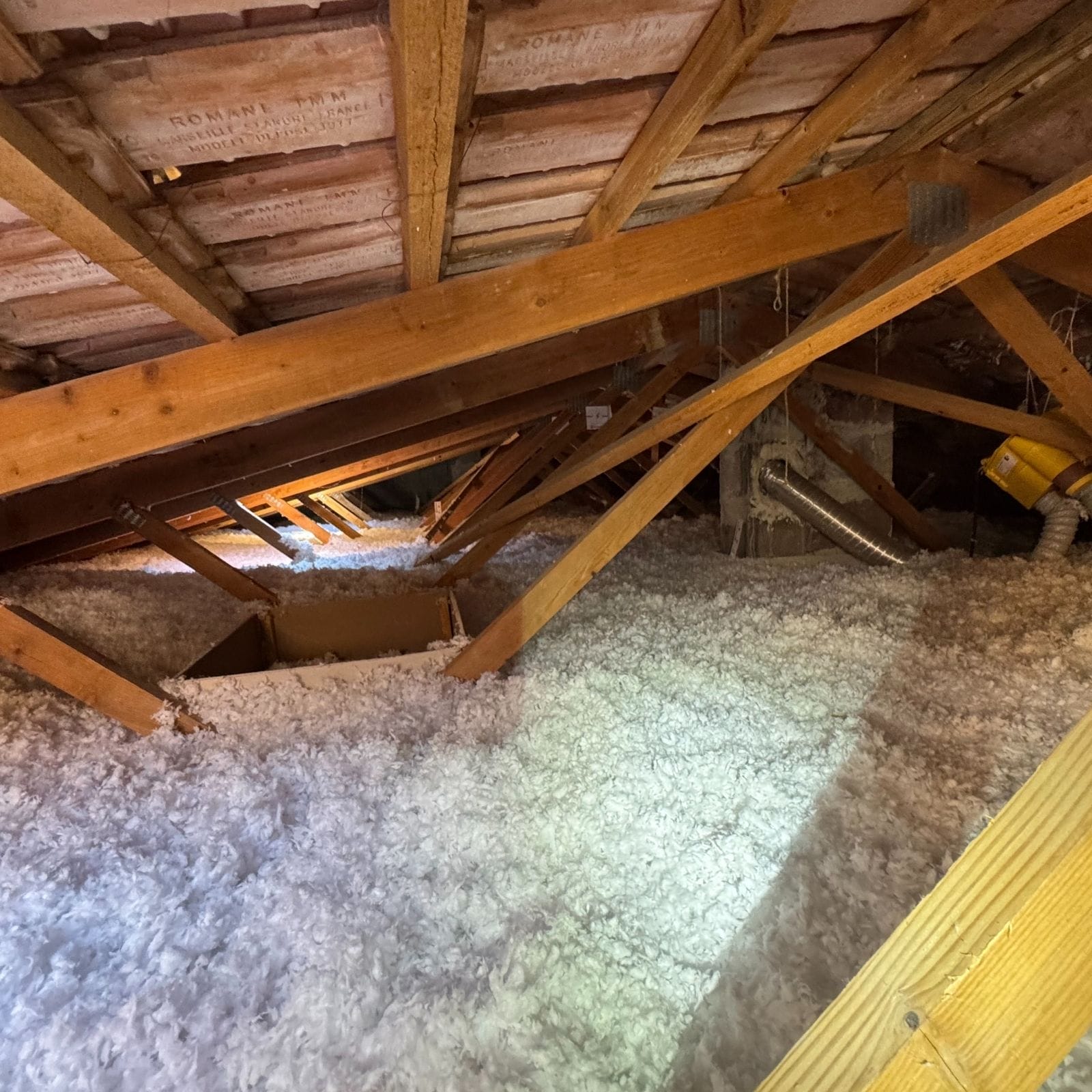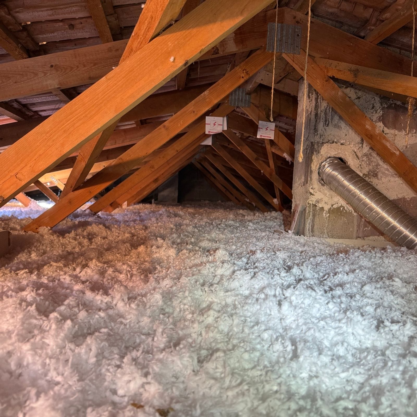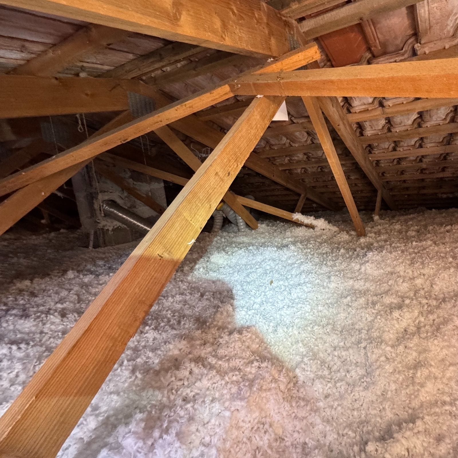 Nous avons donc préconisé la mise en place d’une isolation en laine minérale soufflée, une solution idéale pour les combles perdus, à la fois performante, rapide à mettre en œuvre et durable.